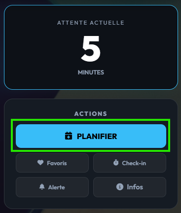 - Bouton Check-in ✅ : Enregistrez votre temps d'attente réel pour participer aux statistiques du site.