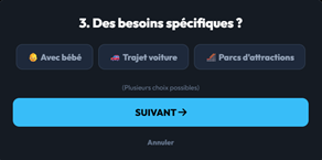 - Vos spécificités (Bébé, trajet en voiture, parcs d'attractions).